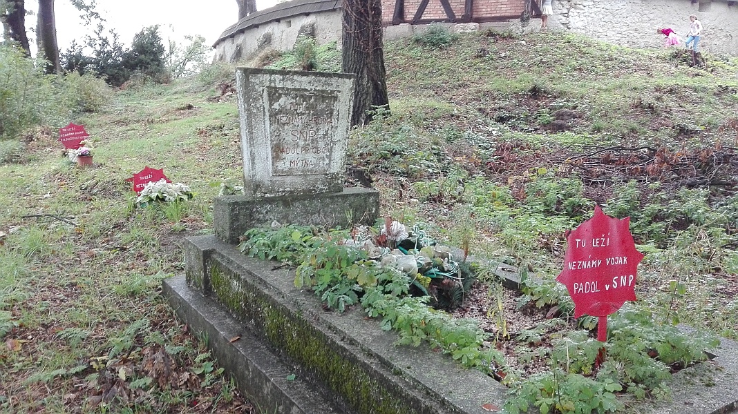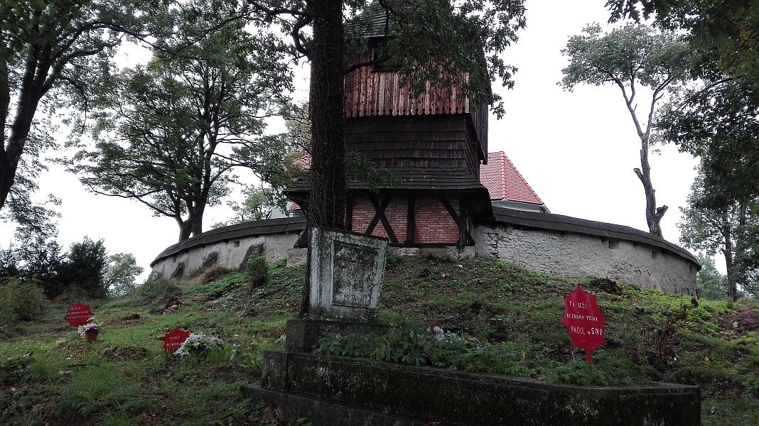 Na cintoríne, ktorý ho obklopujú sa nachádzajú aj 4 vojnové hroby označené plechovou hviezdou. Podľa dát z fondu VHÚ Vojnové hroby a cintoríny na Slovensku by ich malo byť o jeden viac. Odpočívajú v nich 4 domáci a jeden neznámy maďarský vojak z roku 1919. Jeden z hrobov je chybne označený ako hrob padlého v SNP.