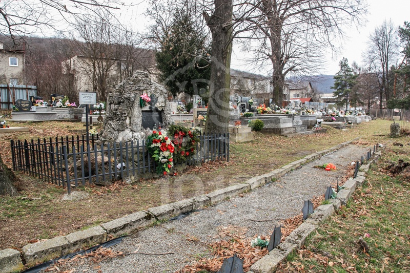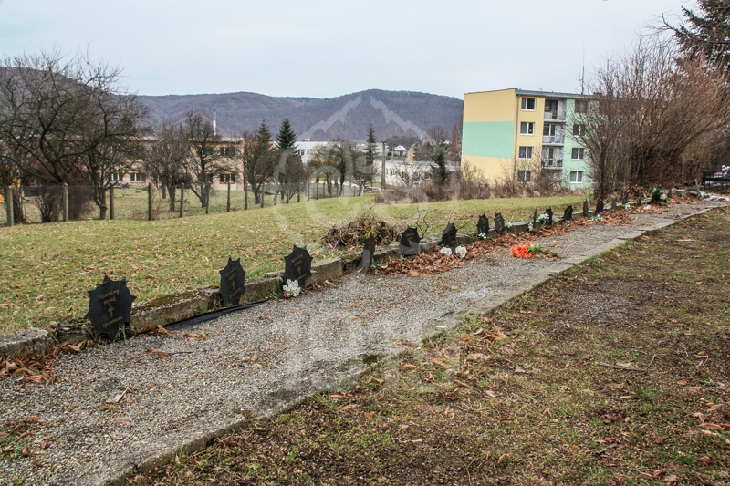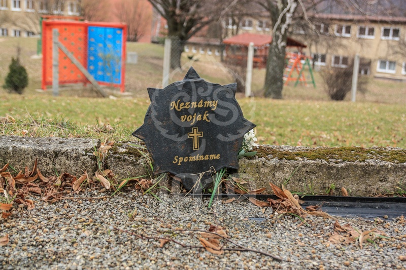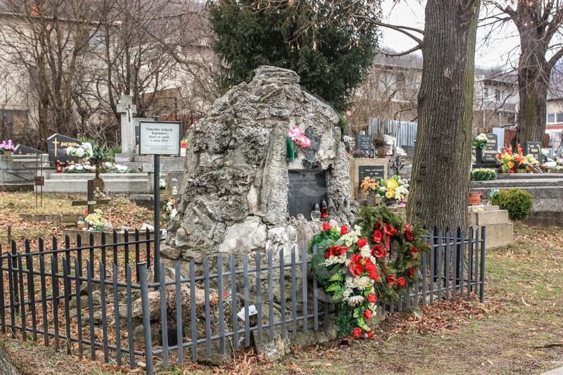 V hromadnom hrobe pri mohyle sú kovovými hviezdami označené hroby padlých vojakov.