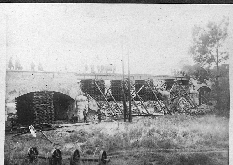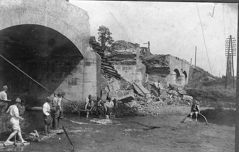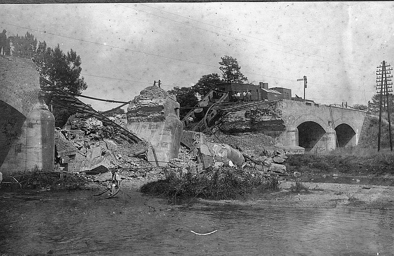 Dňa 20.6.1919, počas bojov o Nových Zámkov sa do akcií zapojil aj československý pancierový vlak. Pri prechádzaní mosta nad riekou Nitrou sa dostal pod paľbu nepriateľa, pričom explodovala jedna z náloží, ktorými bol most podmínovaný. Explózia zničila jeden z oblúkov a uväznila vlak na moste.
